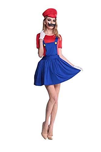 thematys® Superrörmokare, barndomshjältar, dräkt för damer, hjältekostymer, mössa + klänning + skägg + handskar, kostymset för kvinnor, maskeraddräkter för vuxna (M, 160–165 cm, style001)