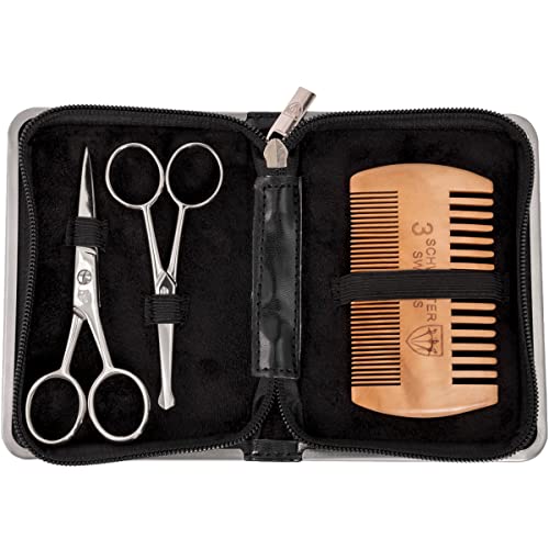 Tre svärvärden – vårdset 'Gladio' för daglig skäggvård, skäggkam, skäggsax, näshårssax, konstläderfodral – märkeskvalitet (5526)