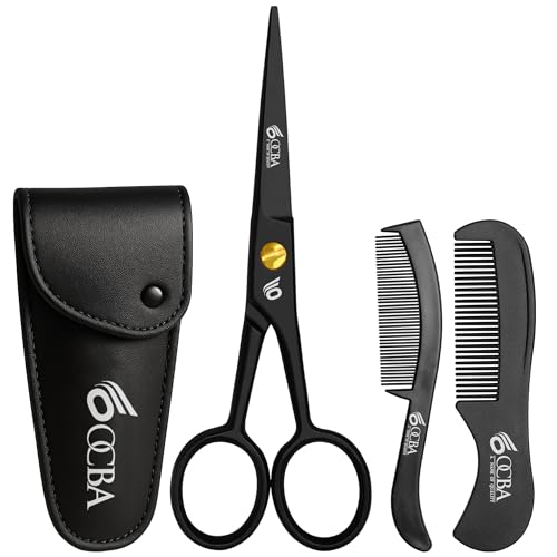 Tre svärdare rostfri professionell skäggsax hårsax med skäggkam i fodralet