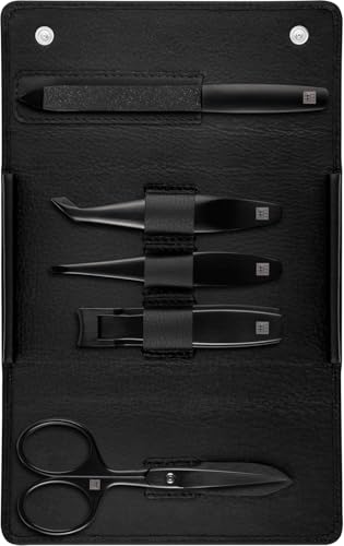 ZWILLING Manikyrset (5-delat, reseset för ansikts- och skägghår, med nagelklippare och skäggsax), Premium, Black Edition