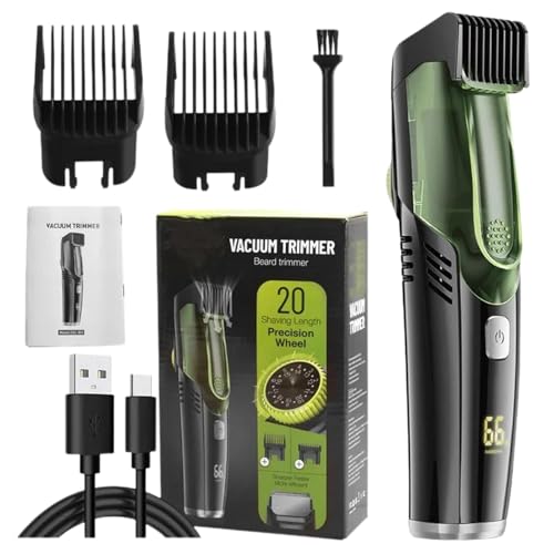 Justerbar Vakuum Skäggtrimmer IPX6 Vattentät för Män, Laddningsbar för Mustasch, Polisonger och Ansiktshår