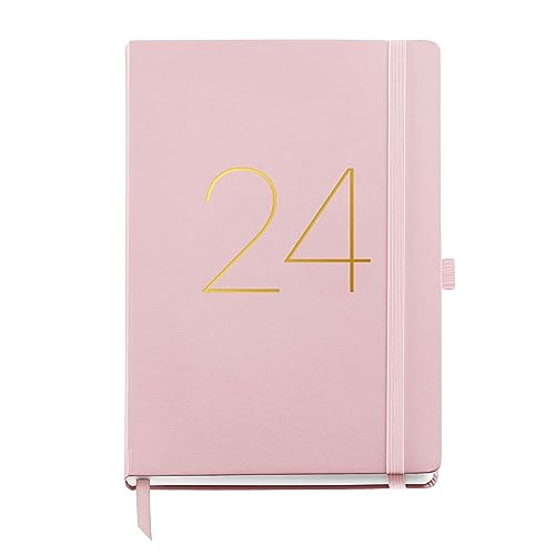 Miquelrius - Årlig dagordning 2024, Dag sida, Plus storlek 155 x 213 mm (liknande A5), Styvt skal sylt hud, elastiskt gummi, katalanska, engelska och portugisiska, Rosa