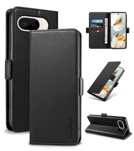 Yunubeyii Skal för Google Pixel 9A - [RFID-blockering] Lyxigt PU Plånbok Flipfodral Korthållare Magnetiskt Case med Kickstand, Stötsäkert Skyddsfodral, Svart