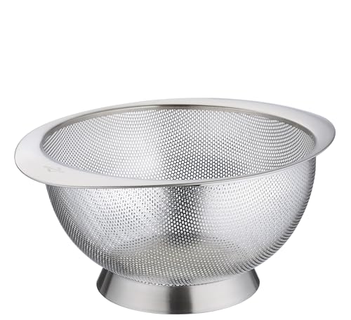 Küchenprofi Seiher DELUXE | rostfritt stål | stativ och brett stöd | sil för nudlar, ris, frukt, grönsaker, sallad och mer | kan även användas som skål | Hygieniskt material | Ø 26 cm