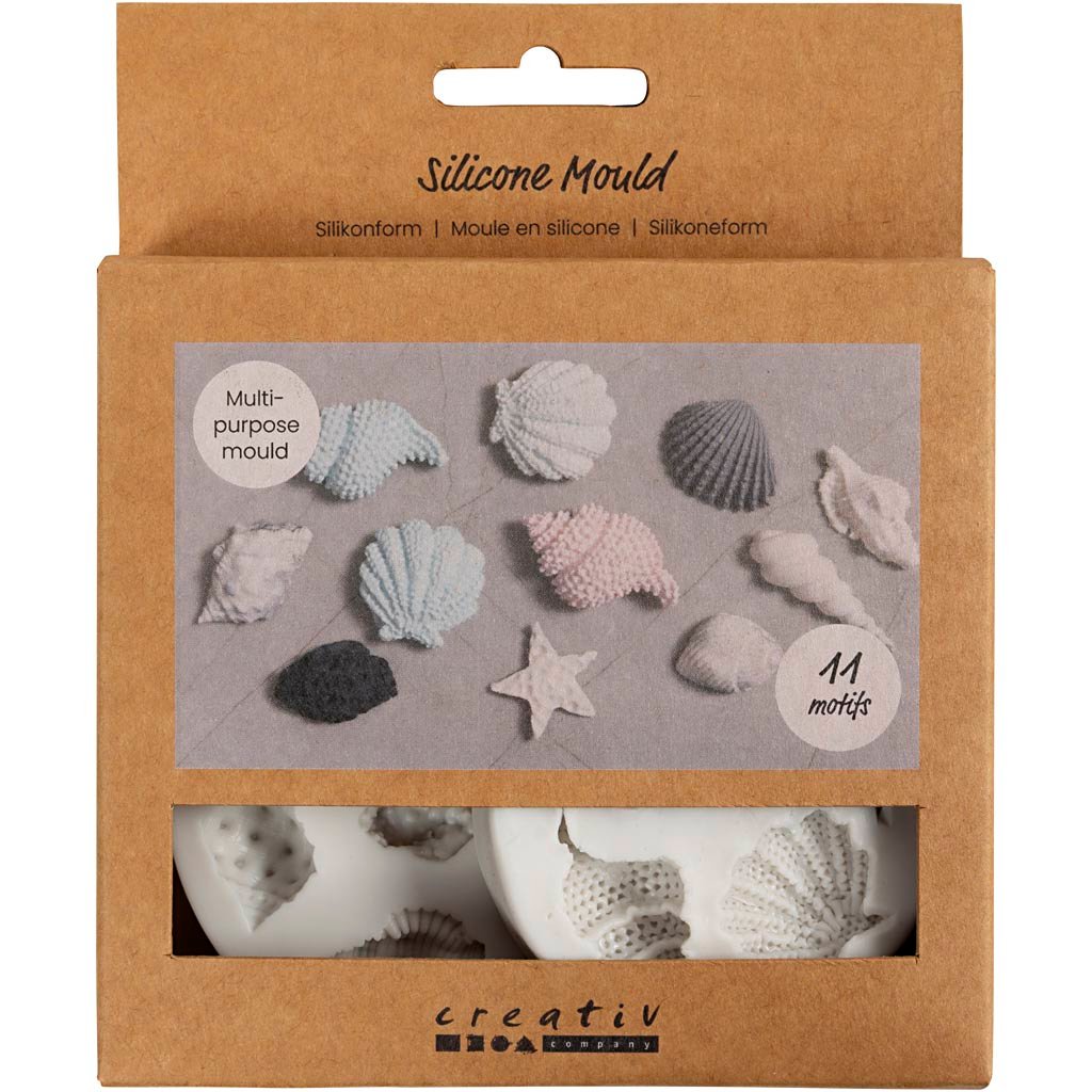 Silikonform, Sjöstjärna, snäcka, skal, H: 0,3-1 cm, L: 1,3-3,3 cm, 2 st./ 1 förp.