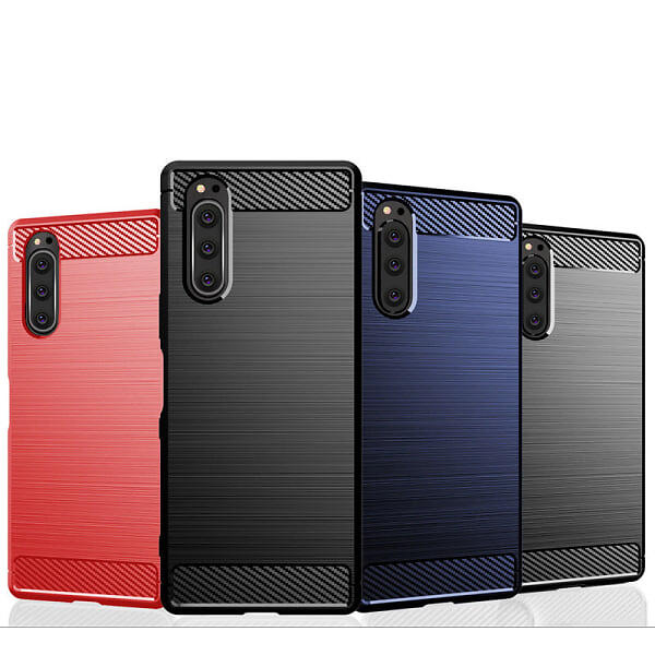 Skalo Sony Xperia 5 Armor Carbon Stöttåligt TPU-skal Röd