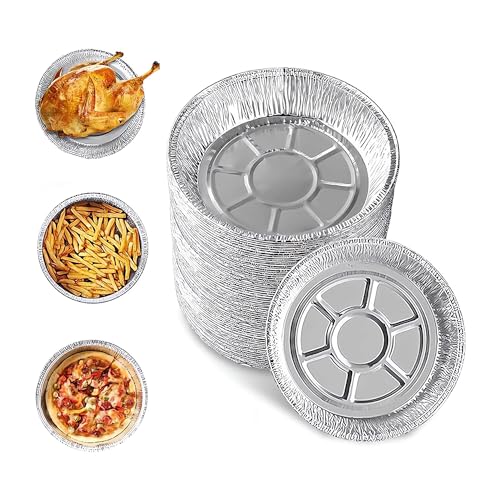 50 stycken aluminiumfoliepannor, set med grill, droppskålar, runda aluminiumskålar, skålar av aluminiumfolie, runda former aluminiumskålar, lämplig för bakning, grillning, matlagning, pommes frites (7