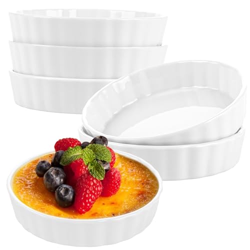 APACALI 6 stycken krämfärgade brulee skålar, 240 ml souffelformar, tartelettformar keramik, platta souffelskålar för bakning av vaniljpudding, minikakor, pudding och dip-såser
