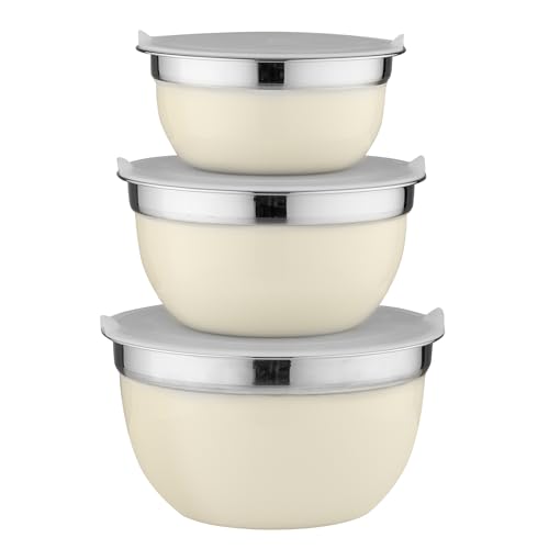 FLORINA Rostfria Skålar med Lock 3-delars Set I Skål Set i 3 Storlekar 14 16 18 cm I Blandningsskål med Lufttätt Lock I Salladsskål Diskmaskinssäker I Perfekt för Bakning Matlagning I Färg: Beige