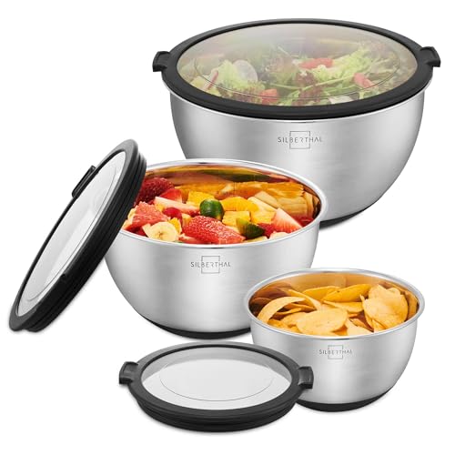 SILBERTHAL Set med skålar i rostfritt stål med lock – 3 stycken – skålar för servering, matlagning, bakning, förvaring