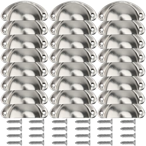 JIEHIN 24 stycken 81 mm, mussla handtag, silver, möbelhandtag, vintage, lådhandtag med skruvar, skåpknappar, halvrunda skalhandtag, metall för lådor, kök, skåp, möbelknoppar