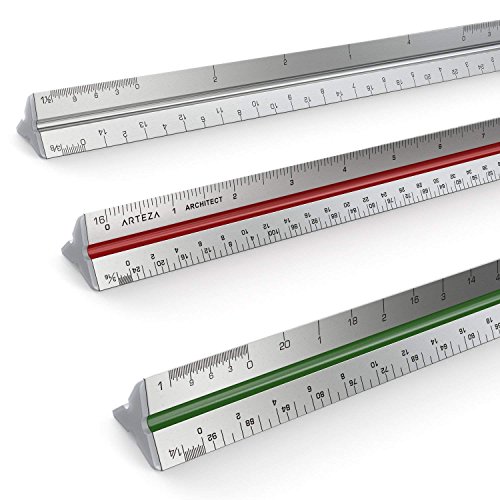 Arkitekt Skallinjal (Imperial) Från Arteza 30.5 cm Triangulär Aluminium Linjal i Professionell Kvalitet för Arkitekt- & Civilingenjör Ritningar.