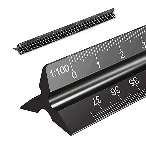 Cyleibe Arkitektonisk skallinjal, aluminium triangulär skallinjal metrisk 1:20, 1:25, 1:50, 1:75, 1:100, 1:125 Standard 30 cm för arkitekter, studenter, arbetare och ingenjörer - svart
