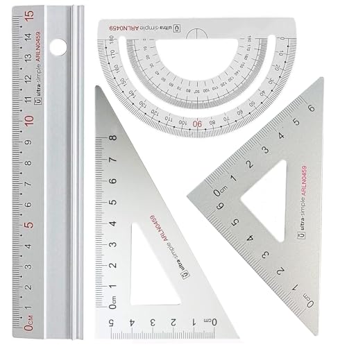 Metallarkitekter skallinjal set – Rodmaie 4 st teknisk ritnings set, matematikgeometri verktyg, gradskiva, triangulär, arkitektlinjal set för student (silver)