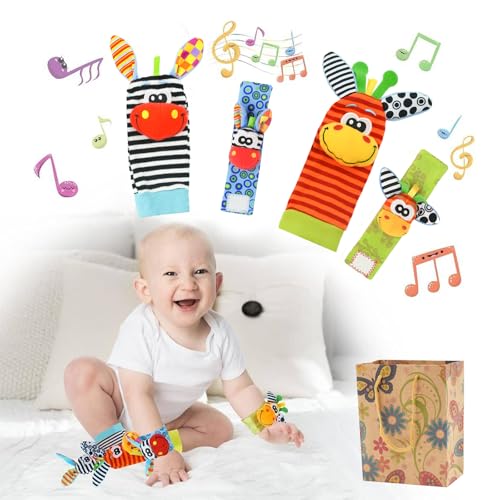 Maxentico Sensoriska strumpor för baby, uppvaknande leksaker, hand- och fotskallra, skallra babystrumpor, baby handled och strumpor skallror leksaker för nyfödd baby 0–12 månader