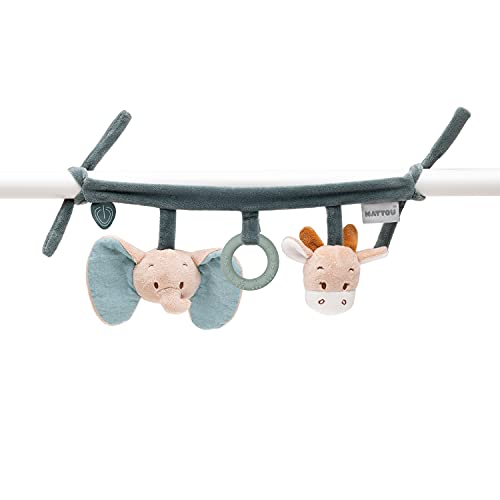 Nattou leksaker för upphängning av bomull (muslinin) och polyester, med skallror och silikonring, ca 32 cm, Luna och Axel, grön/beige