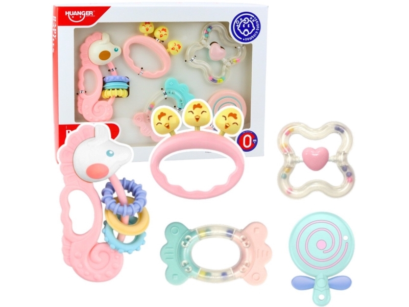 Set Med Sensoriska Skallror För Spädbarn Rosa 5St