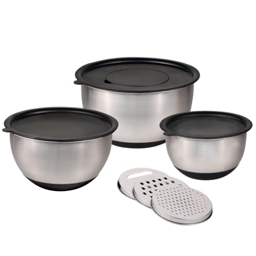 Kesper | rostfritt stål skålset, 3 skålar med lock och rivjärn, halkfri silikonbotten, inkl. 3 rivjärn | 90899
