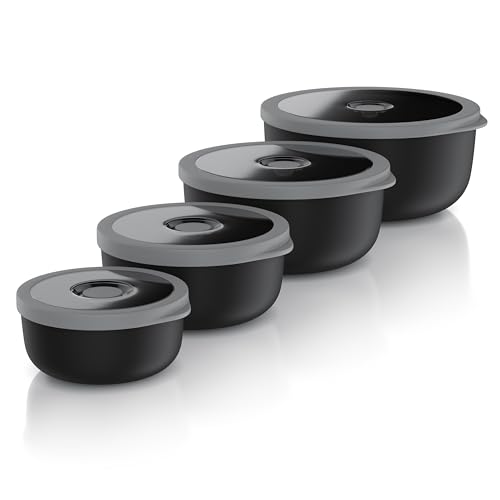 TEAMFAR blandningsskål, 4 stycken rostfria salladsskålar med lufttätt lock, svart skålset för kök, 4,5/3/1,5/1,2 L, diskmaskinssäker