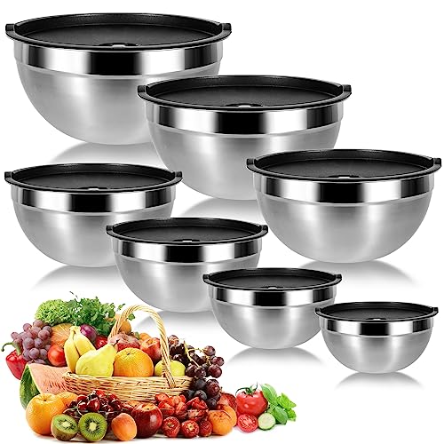 Cinnani rostfritt stål skålset 7 delar, rostfritt stål blandningsskål, salladsskål, köksskål med lock, multifunktionella skålar, stapelbara