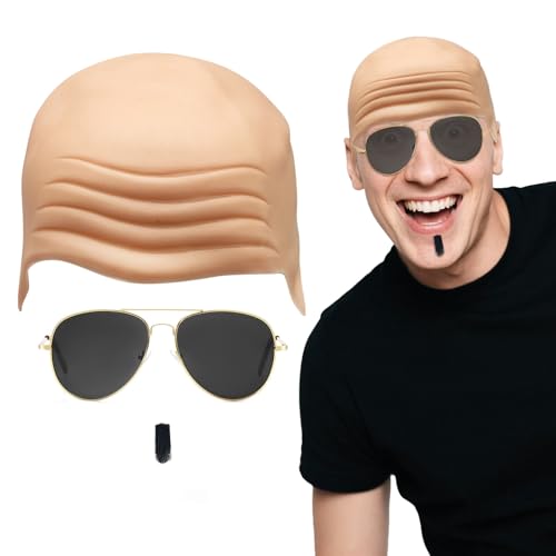 SAIIURV 3 st tillbehör för vuxna, skalliga kepsar för vuxna män kvinnor, cirkus fin klänning, skallig keps + solglasögon + svart själslapp, vuxen utklädning skämt och nyheter, berömd rappare