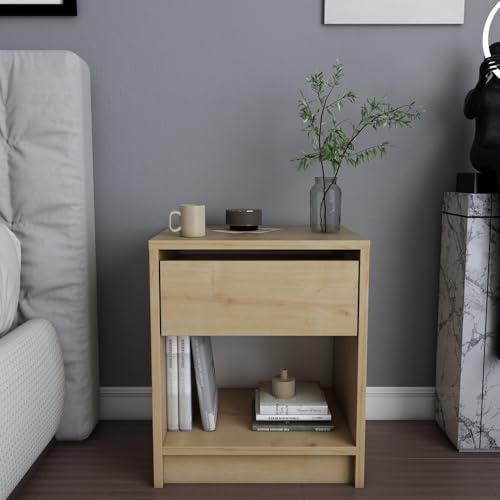 Hanah Home skandinavisk ek nattstativ, 44,6 x 35,9 x 52,8 cm | 100% melaminbelagd partikelbräda, 18 mm tjock | snygg och funktionell för hotell och cabin inredning