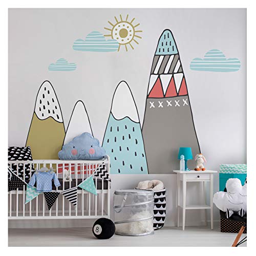 Väggklistermärke för barn – Väggdekoration Barnrum Inredning – Skandinaviskt Väggklistermärke Barn – Jätteberg Skandinavisk Ivka – H 80 x L 110 cm