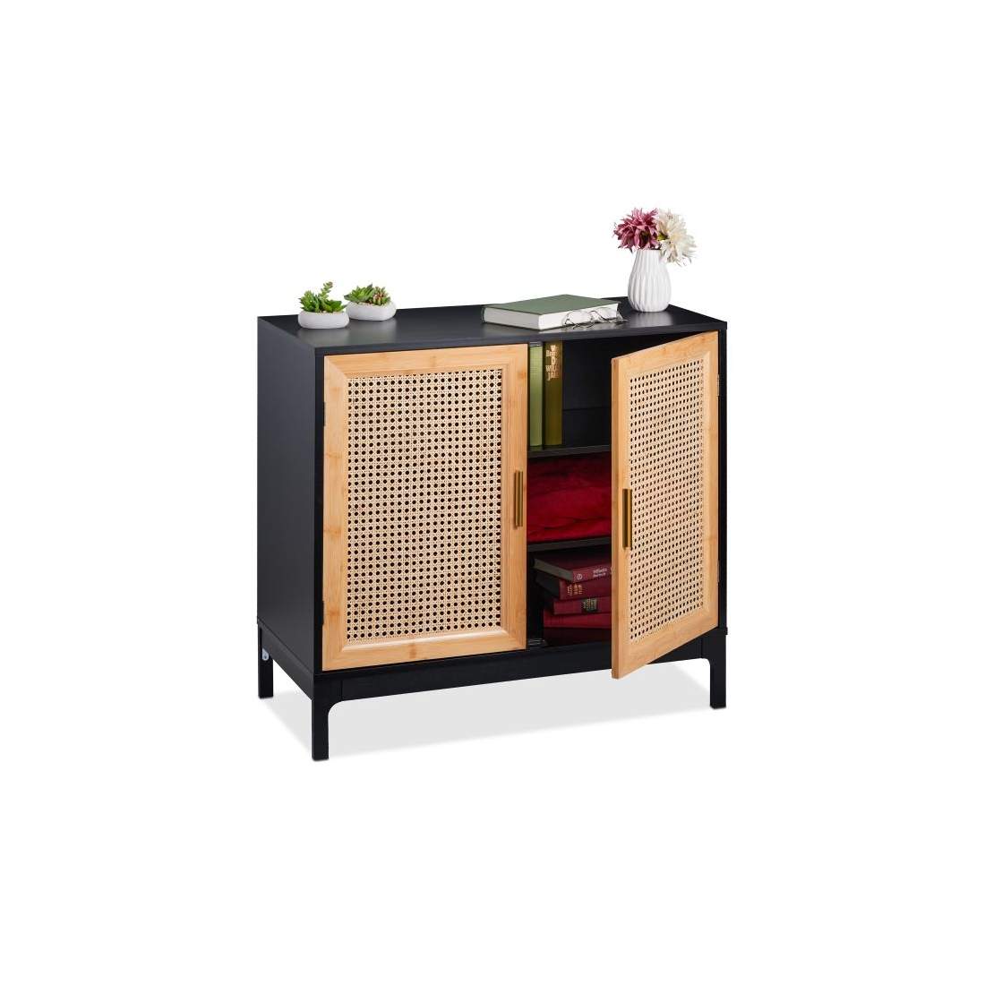 Relaxdays Skänk 2 fack, rotting- och träutseende, H x B x D: 75 x 80 x 40 cm, vardagsrum, kök, sidoskåp, natur