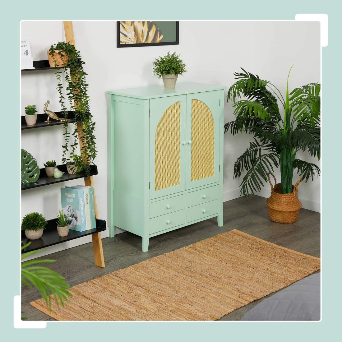Skänk i turkos rotting – Dekorativt förvaringsskåp