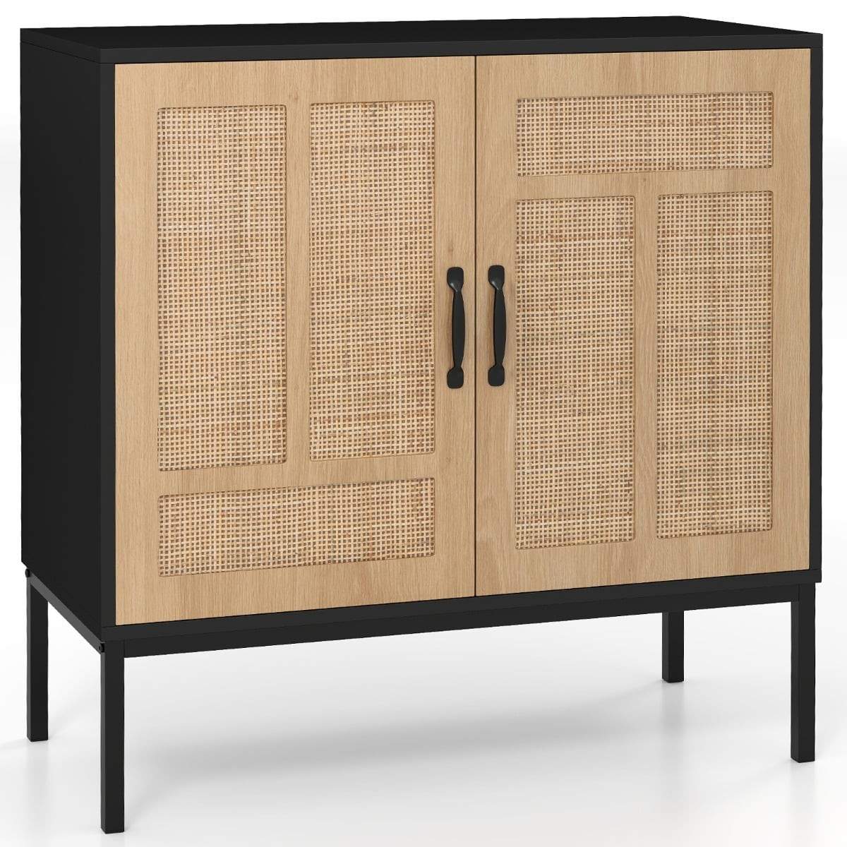 Skänk i rotting – justerbara hyllor, 2 dörrar, svart