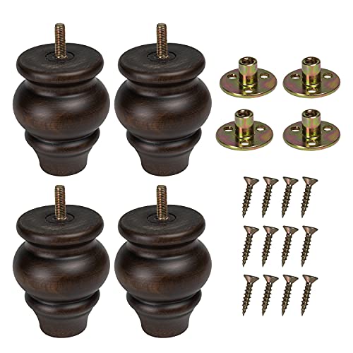 Mysummer Uppsättning av 4 massiva trämöbelben med vridna ben 9 cm höga vita ytor M8 ersättningsmöbler fötter soffben med bult för soffa skåp (valnöt)