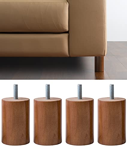 IPEA Valnötsfärgade trämöbel- och sofffötter – Tillverkad i Italien – set med 4 ben med cylinderform för skåp och fåtöljer – valnötsfärgade fötter – möbelben – höjd 100 mm