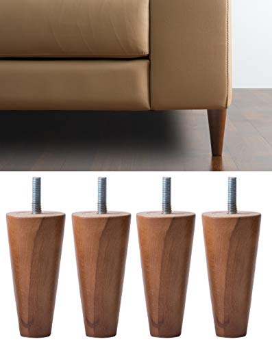 IPEA Möbelben och soffor i valnötsfärgat trä – Tillverkad i Italien – set med 4 ben med konform för skåp och fåtöljer – valnötsfärgade fötter – möbelben, höjd 140 mm