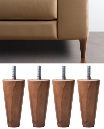 LCOUACEO Möbelfötter, träbordsben, 6 stycken, koniska möbelben, ersättning 12 cm, sofffötter, träben för möbler, skåp, ben, skåpfötter med gummikuddar för bord, soffa, säng, skåp, soffa