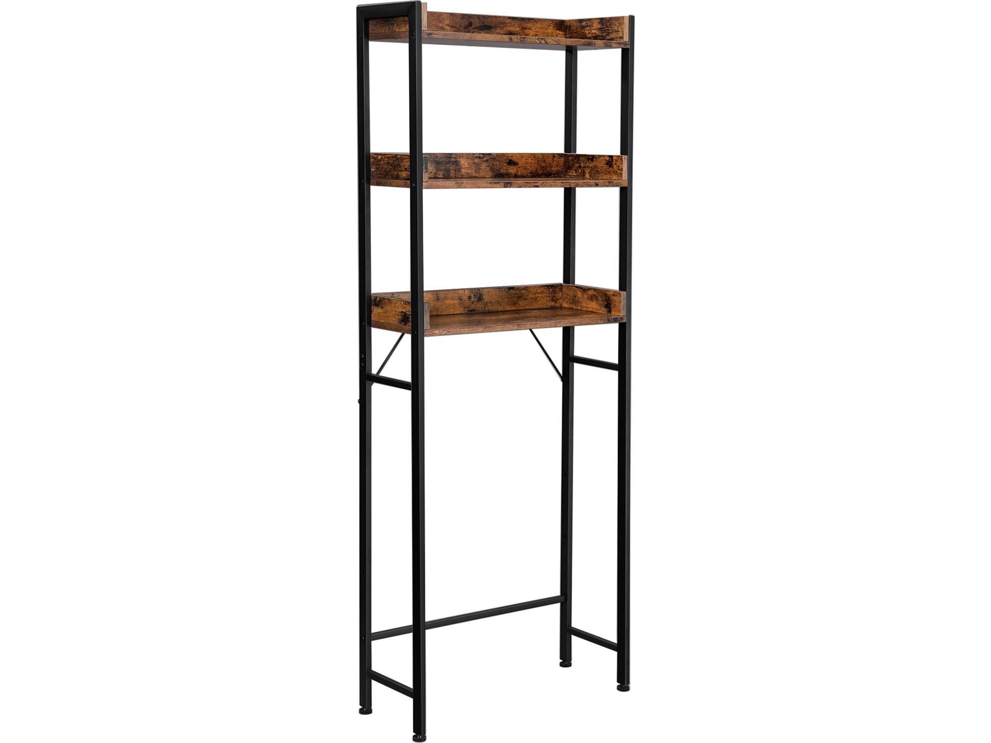 VASAGEL Toaletthylla, badrumshylla, med skåp, stålram, för tvättmaskin, enkel installation, industriell design, 64 x 24 x 171 cm, vintage brun-svart BTS003B01