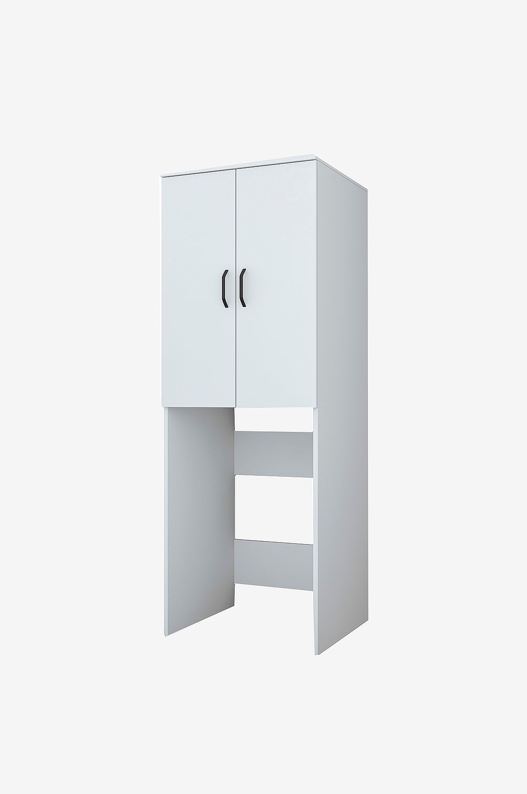 Tidyard Tvättmaskinsskåp, tvättmaskinshylla, tvättmaskinshylla med hyllor, platsbesparande hylla, badrumsskåp, skåp över tvättmaskin, vit 64 x 25,5 x 190 cm