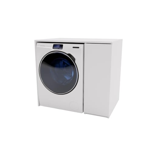 Vonia Tvättmaskinshöjd med låda - Tvättmaskin Piedestal - Tvättmaskinshållare - Tvättmaskinsfot - Tvättmaskinsskåp - Tvättmaskinhus Skåp (Vit, 1 skåp)