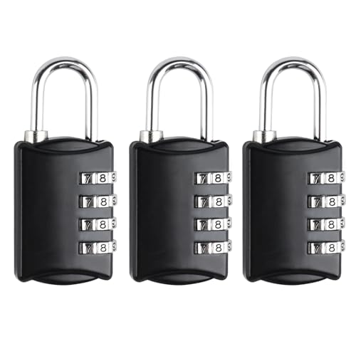 Fosmon TSA 3-siffrigt kombinationskabel hänglås: Resväska, resväska, skåp eller ryggsäck - säkra allt bagage, cykel, grind, rabatt - hänglås med 3-siffrig kod - svart - 3 st