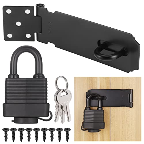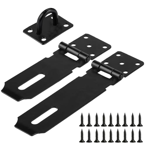 XIATIAN Säkerhetsrån, 2 stycken 12 cm (12 tum) tunga hänglås hasp, rostfritt stål dörrlås lås dörrhasp med skruvar, för skåp, garageport, svart