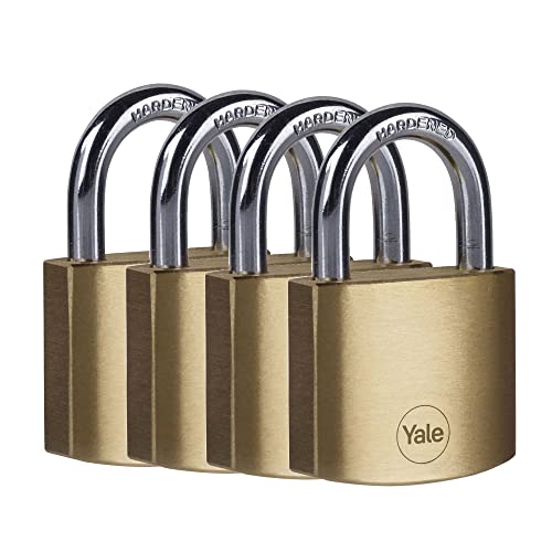 Yale Set med 4 hänglås i mässing 40 mm, Y110B/40/122/4, stålhandtag, 3 nycklar, för skolskåp, sportgarderob, verktygslåda, skåp