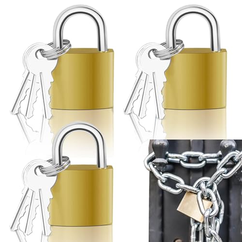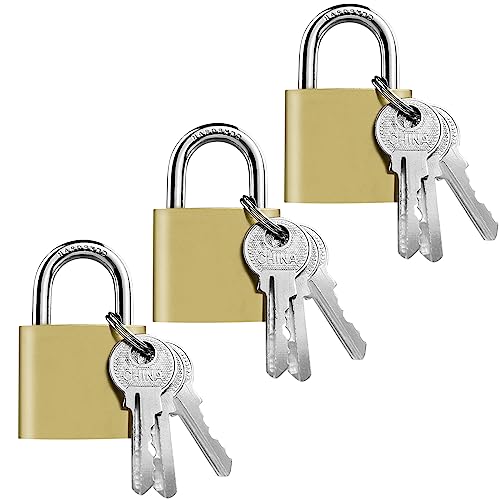 Hänglås i mässing, med 9 nycklar, hänglås för ryggsäckar, resväskor, verktygslådor, källarlås, spind, väska, gym skåp, cykellås, 3 stycken (32 x 49 mm)