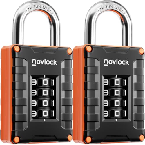Kombinationslås – 4-siffrigt hänglås för skåp (gym, skola, arbete), förvaringslådor, grindar, staket och mer – 2-pack, svart/orange