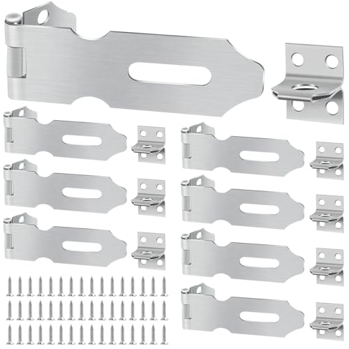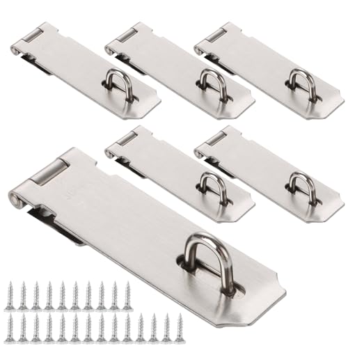 AKOLAFE 6 stycken hänglås, hasp, 125 mm, hänglås med skruvar, 90 graders rostfritt stål, lås för skåp 12 cm (12 tum), enhet, säkerhetsöverfall, silver för trädgård, garage, skåpdörr, rum