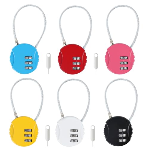 6 stycken kombinationslås, hänglås med nummerkod, bagagelås kombinationslås 3 siffror, liten metall väderbeständig kombinationslås för resväskor, skåp, med 4 x kodare