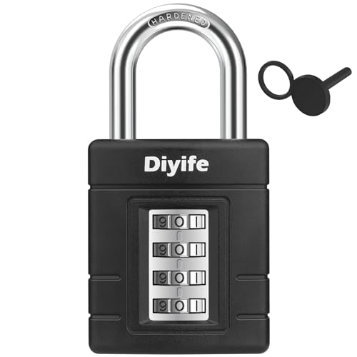 Diyife 4-siffrigt kombinationslås, kraftig kombination hänglås med 8 mm tjock boje, enknappsupplåsning, för skola, gym, sport lös, hasp skåp och förvaring
