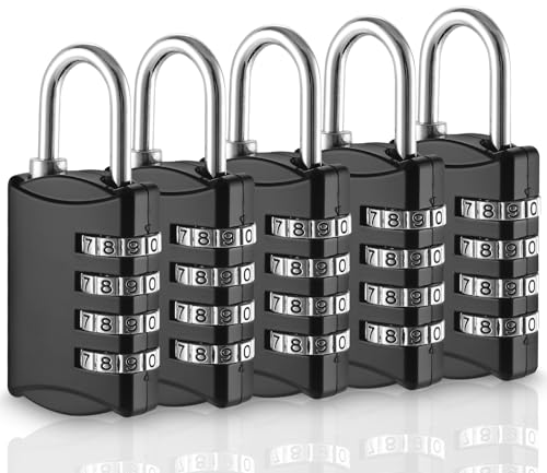 Xespis 5 stycken kombinationslås, hänglås, 4 siffror, lås med nummerkod, tillverkad av zinklegering väderbeständig, för skola, skåp, skjul, trädgård, gym