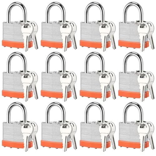 12 st solid Keyed Alike hänglås med 24 samma nycklar och kort härdad bygel som motstår klippning, gymskåp lås med nyckel, förvaringsdyna lås för skåp gym grind utomhus inomhus användning (kort)
