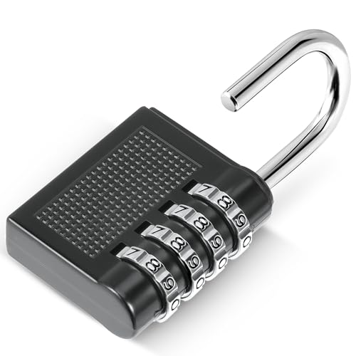 Kombinationslås – 4-siffrigt hänglås för skåp (gym, skola, arbete), förvaringslådor, grindar, staket och mer – 1-pack, svart