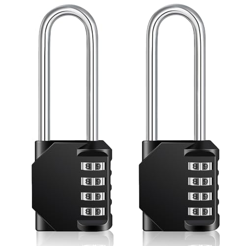 Kurtzy 4 Nummers Kombinationslås (2 Pack) – 16 cm med Långt Lås – Hållbart Utomhus Vattensäkert Lås med Återställningsbar Kod – Hänglås för Cyklar, Grindar, Större Cyklar, Gym, Skol, Skjul & Skåp