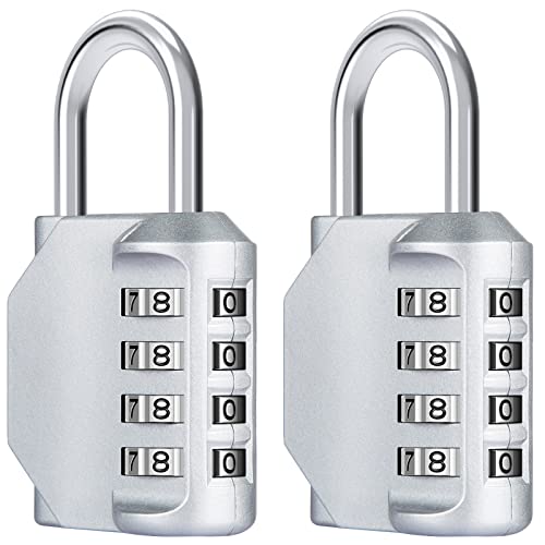 Diyife Väderbeständigt kombinationslås, [2-pack] 4-siffrigt hänglås för skola gym skåp, arkivskåp, verktygslåda, fodral, silver